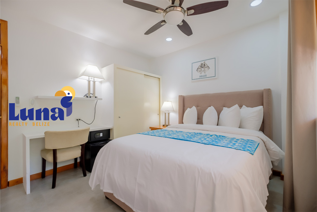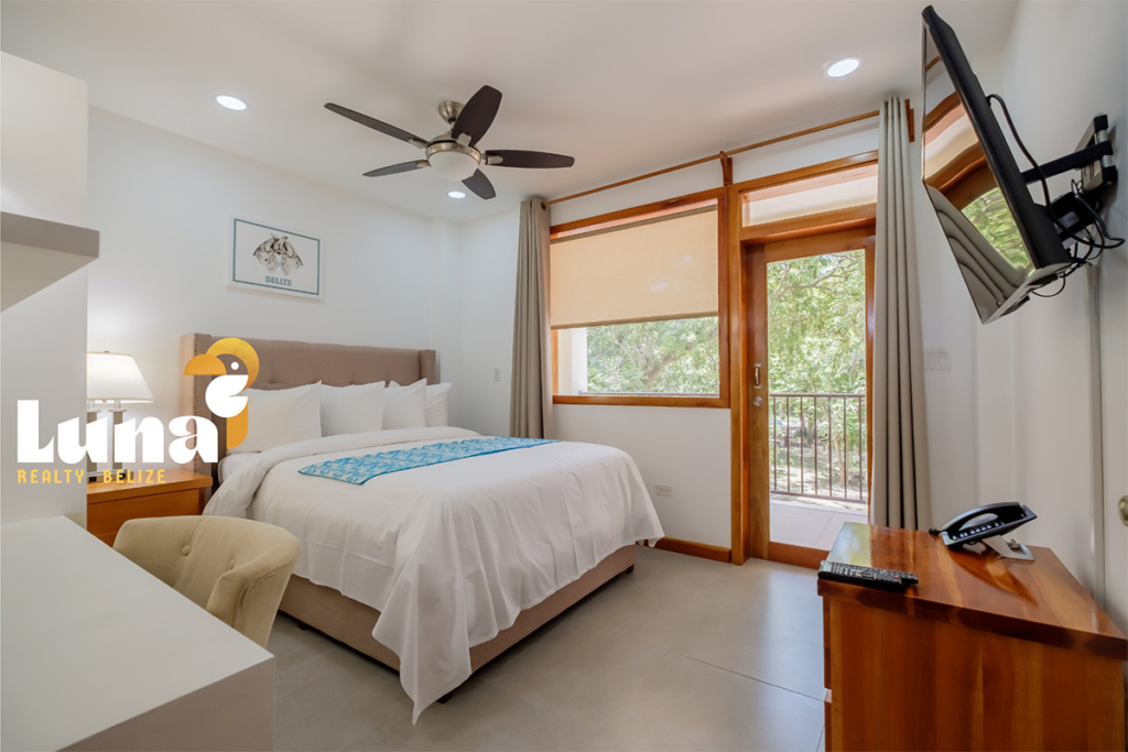 Luna Realty Belize is excited to share this entry-priced, 2nd floor studio condo with you within the Grand Baymen Gardens community, a Best Western branded property. Located only ½ mile south of town, this charming unit is only a short stroll from grocery stores, hardware store, upcoming water taxi terminal, and only 3 blocks from the Caribbean waters. On-site amenities are abundant, with a large pool, tennis court, and gym for owners and renters to enjoy.