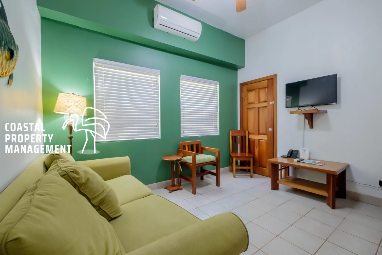 Now available for long-term rental, this fully furnished 1-bedroom, 1-bathroom corner unit is located on the ground floor with garden views. Situated in the desirable Grand Baymen community just 0.5 miles south of San Pedro Town, this condo is ideal for remote workers, professionals, or long-term island residents.