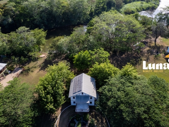 This custom 2-bedroom, 2-bathroom home sits on lot #207, a nearly 0.5-acre river-side parcel, offering serene views and refreshing breezes — all with the reassurance of being outside the flood zone. Say ‘hello’ to your dream riverside retreat in the heart of Carmelita Gardens – a vibrant, eco-conscious community in Cayo, Belize.