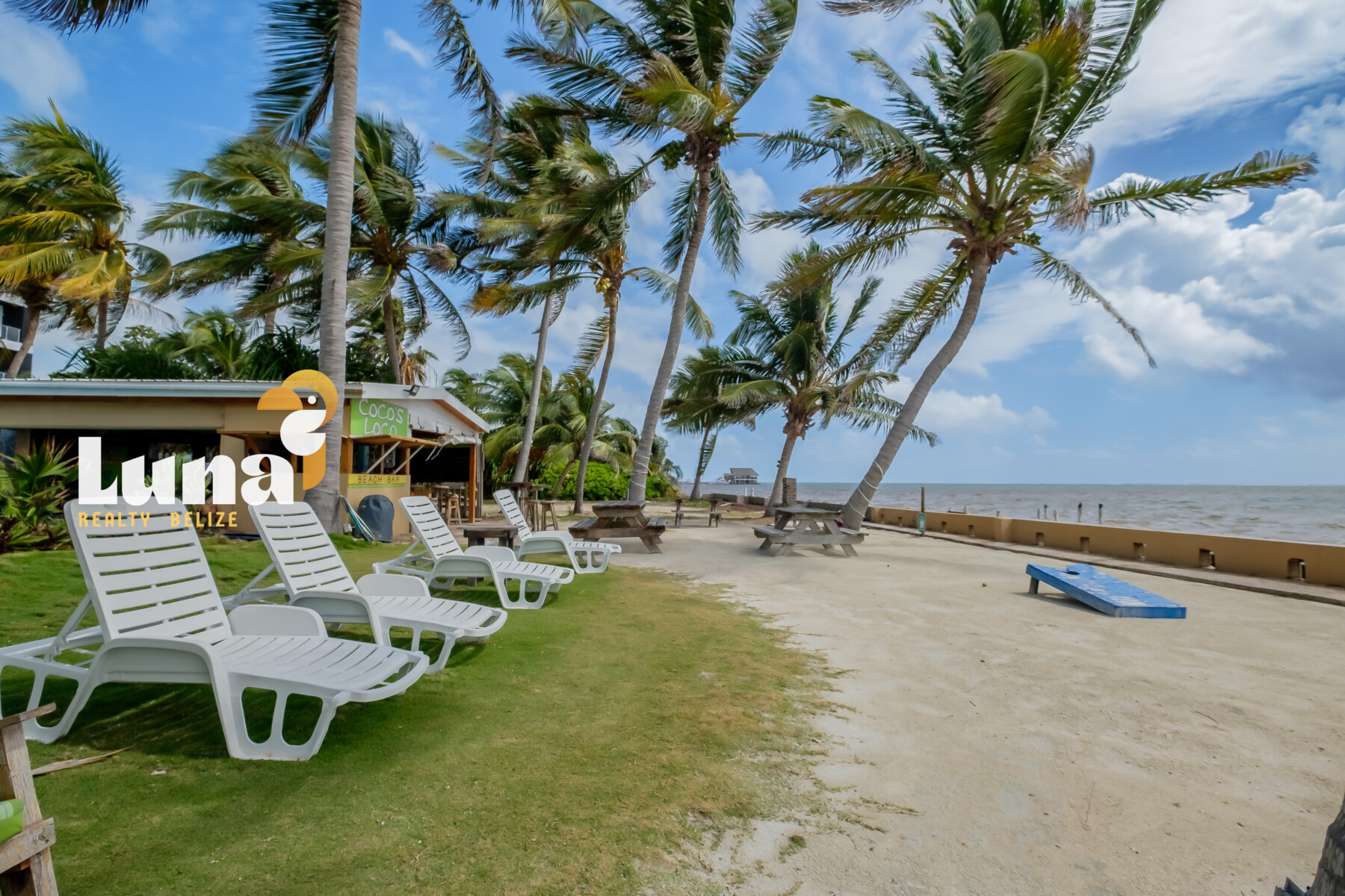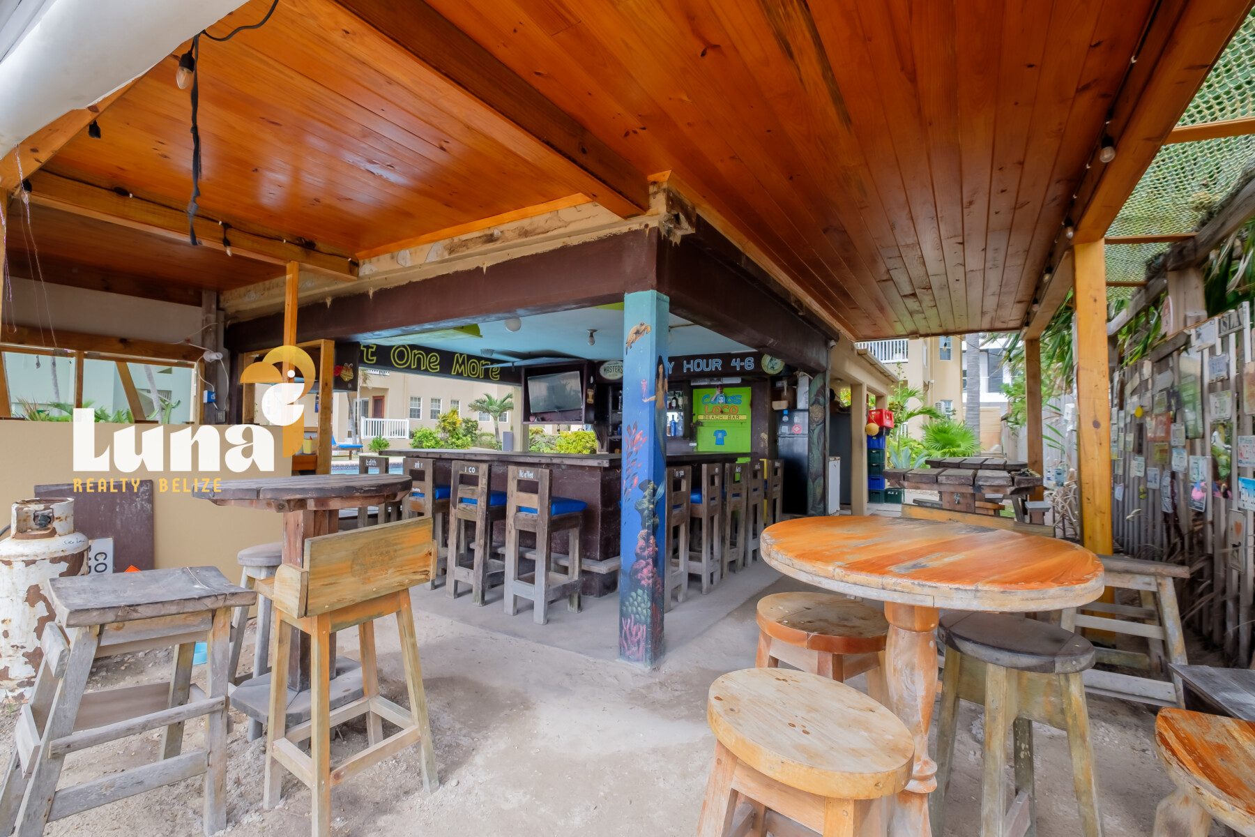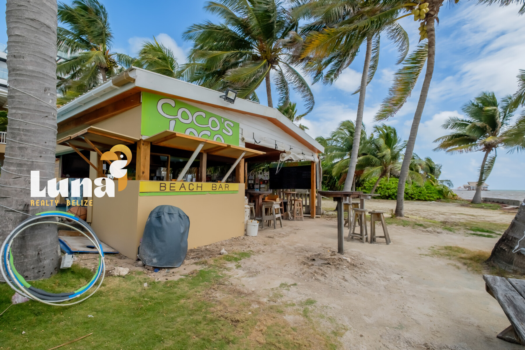Beach Bars for Sale in Belize » An island hotspot in the heart of Tres Cocos, Cocos Loco is the kind of place where everybody knows your name — and you’re celebrated the moment you arrive. With its laid-back, “Cheers”-style vibe and unbeatable toes-in-the-sand setting, this iconic beachfront bar has long been a beloved staple on Ambergris Caye.