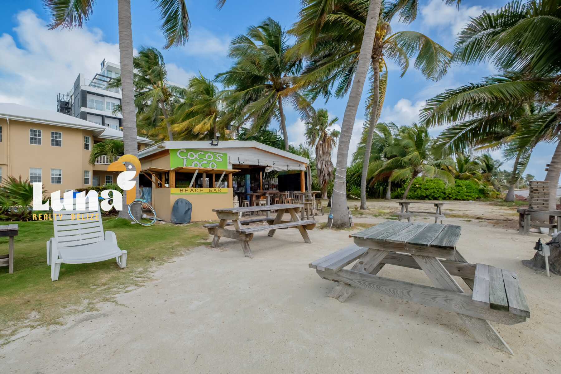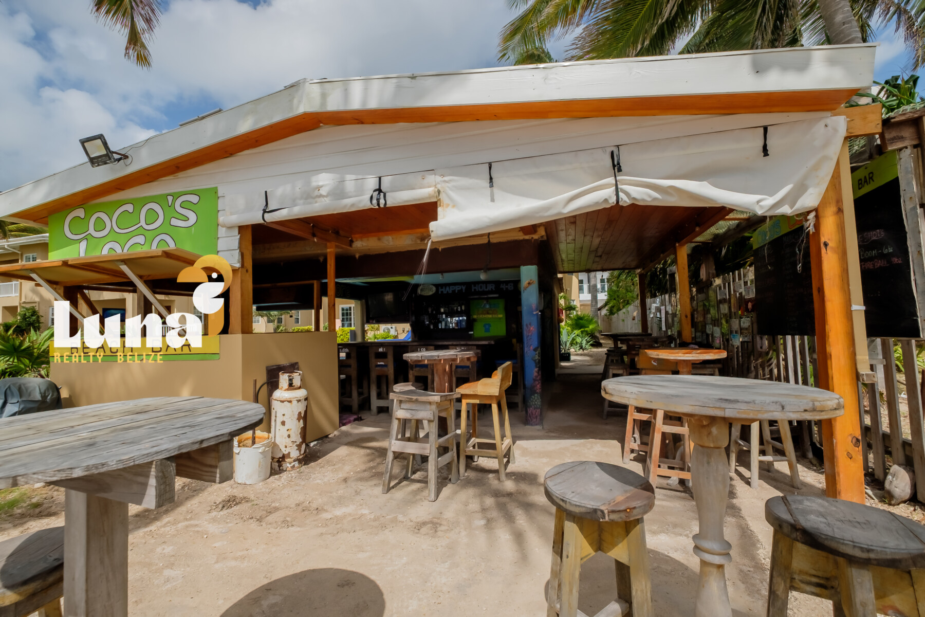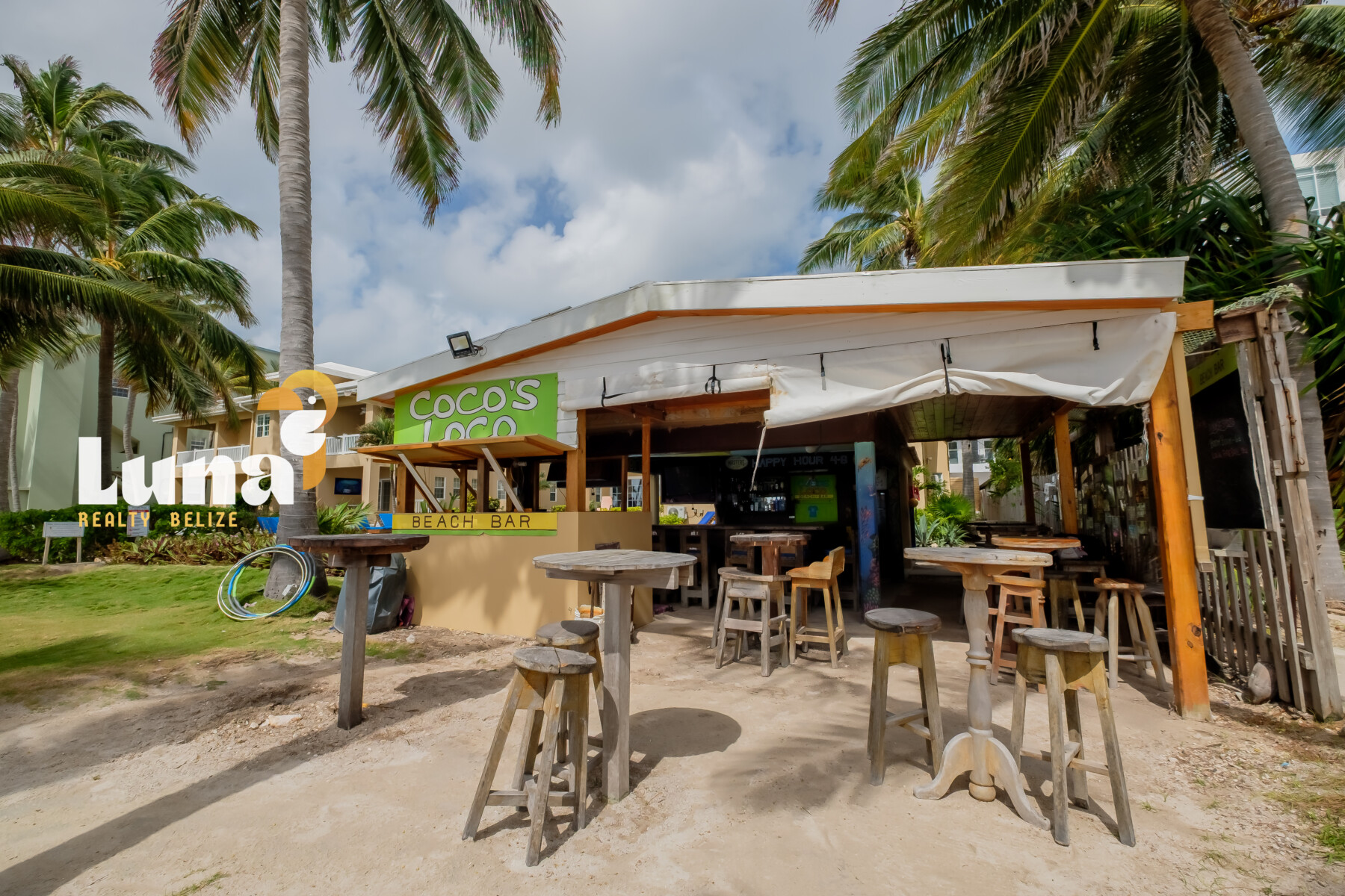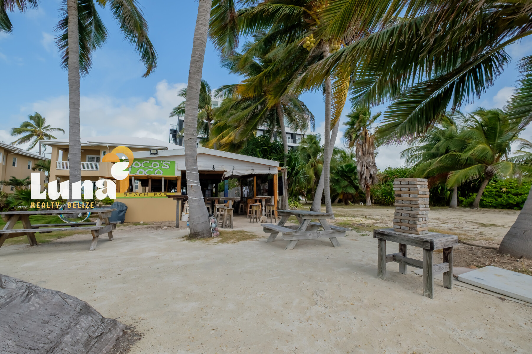 Beach Bars for Sale in Belize » An island hotspot in the heart of Tres Cocos, Cocos Loco is the kind of place where everybody knows your name — and you’re celebrated the moment you arrive. With its laid-back, “Cheers”-style vibe and unbeatable toes-in-the-sand setting, this iconic beachfront bar has long been a beloved staple on Ambergris Caye.