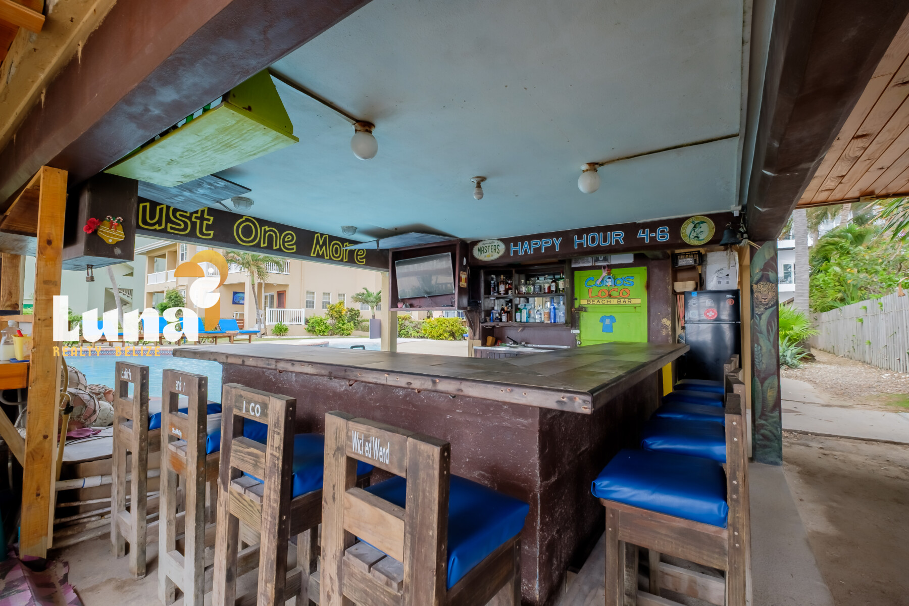 Located within the grounds of Bermuda Palms Resort, Cocos Loco benefits from a steady stream of resort guests while remaining a favorite gathering place for locals, expats, and returning visitors. Bar guests enjoy access to the resort pool, creating an easy, all-day beach-and-bar experience that keeps the energy lively and the drinks flowing.
