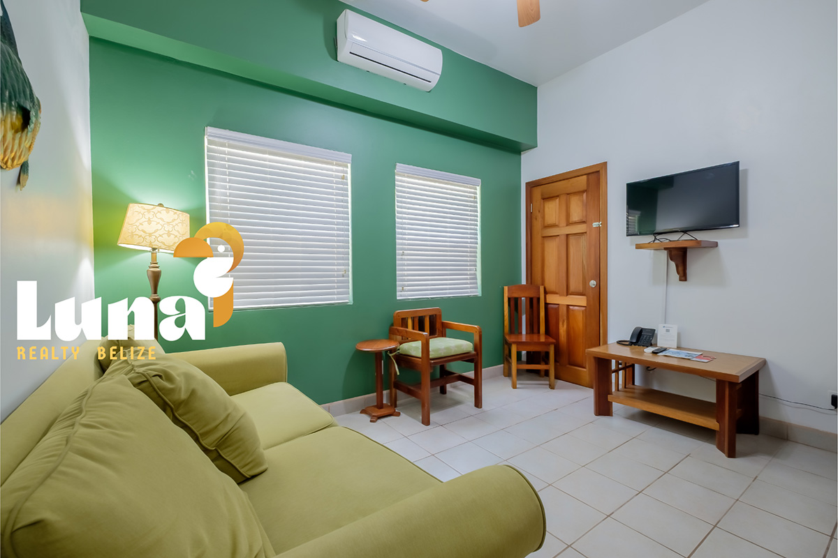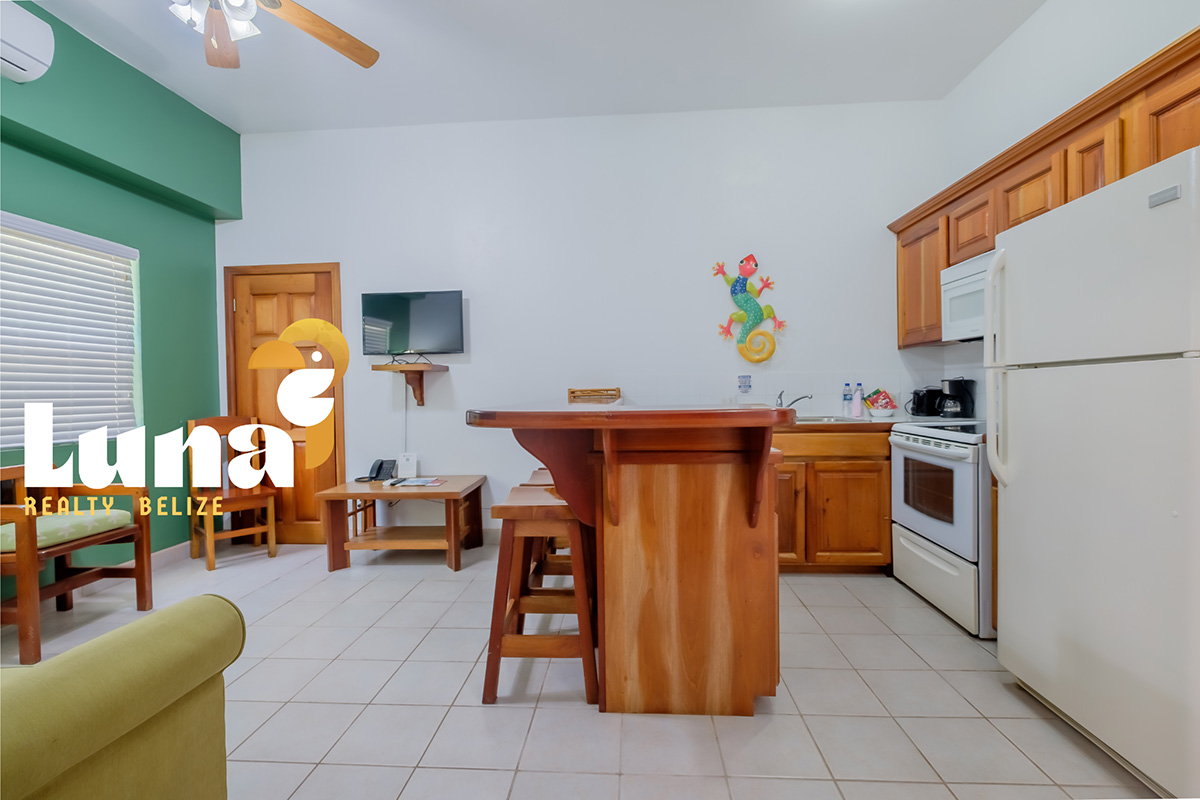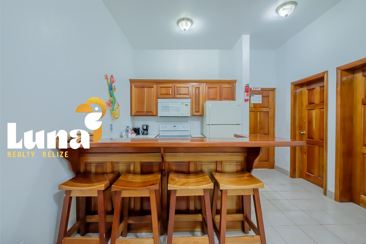 Discover this efficient 1-bedroom, 1-bathroom 1st floor corner condo at Grand Baymen Gardens located 0.5 miles south of San Pedro, Ambergris Caye, Belize. Perfectly situated with a peaceful garden-facing view, Unit C108 offers natural light, island breezes, and easy access to all the amenities of resort-style living.