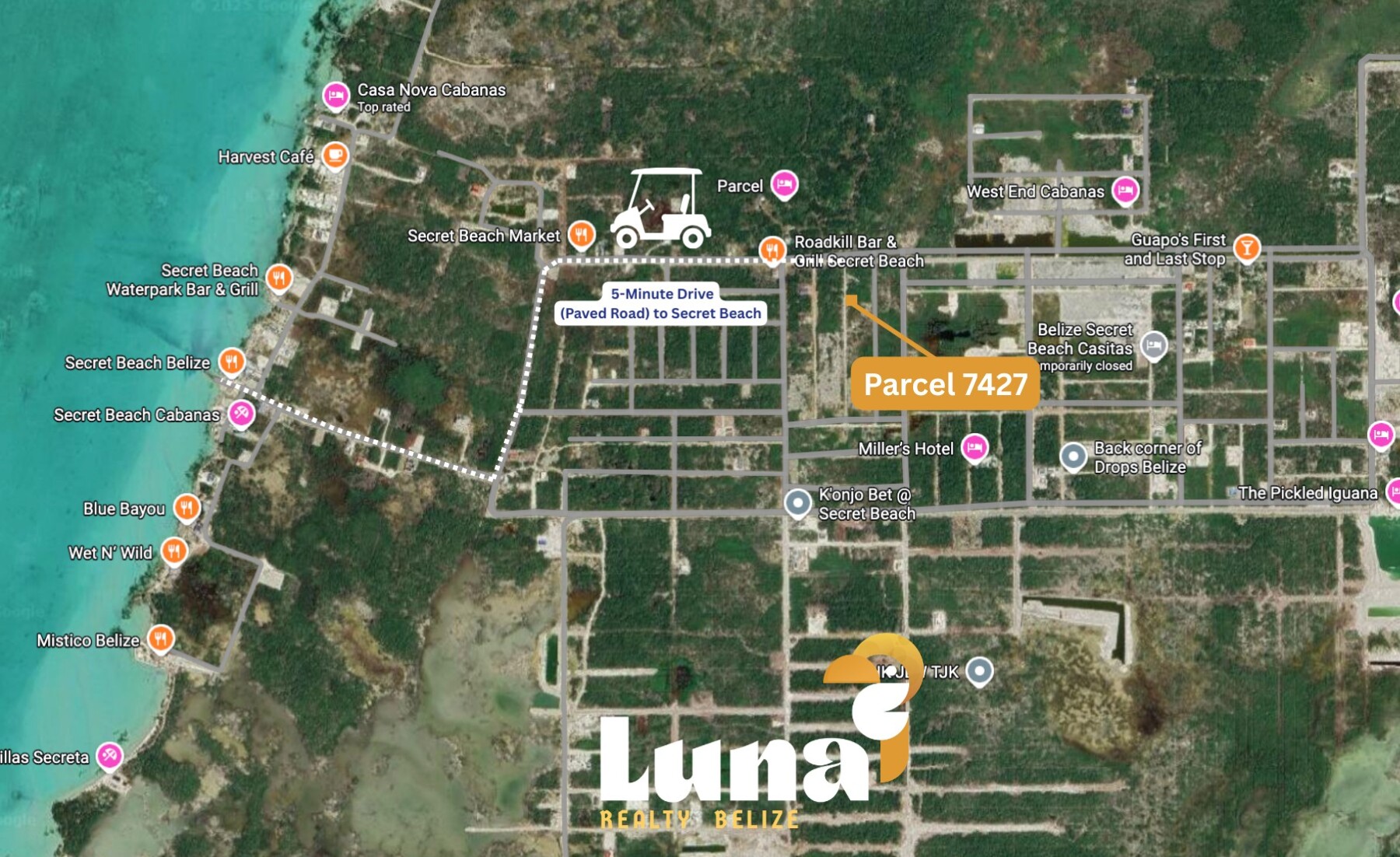 Parcel 7427 offers 60 x 75 ft (423 sq. meters) of solid, build-ready ground in Grand Belizean Estates. With lush vegetation and easy access, it’s just 5 minutes from Secret Beach, making it an ideal location for a sustainable home, rental, or boutique retreat.