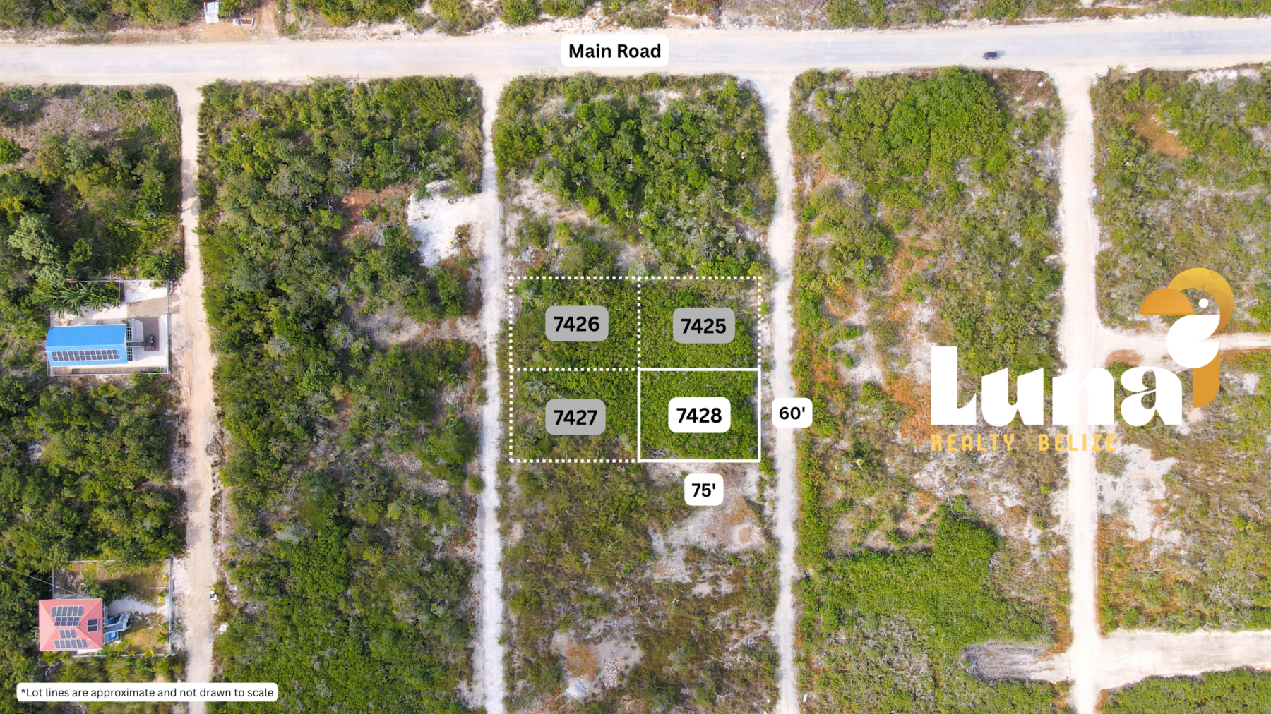 Parcel 7428 features 60 x 75 ft (423 sq. meters) of solid ground with natural vegetation in Grand Belizean Estates. Located only 5 minutes from Secret Beach, this lot offers easy access to the sand and surf while maintaining privacy.