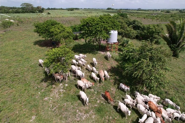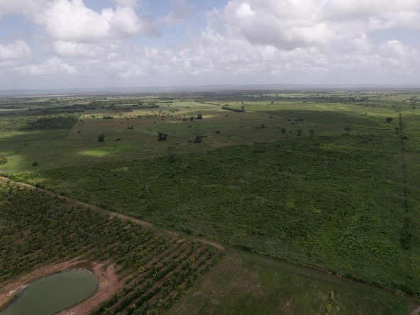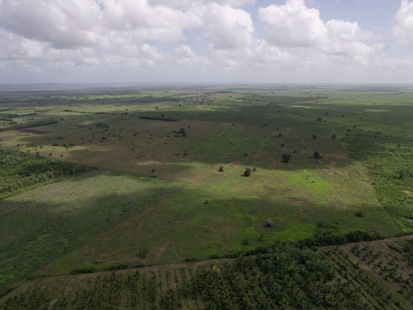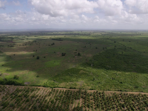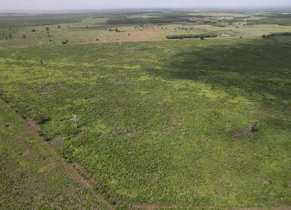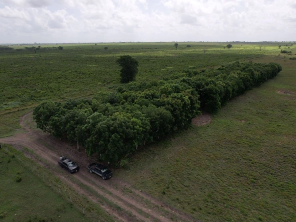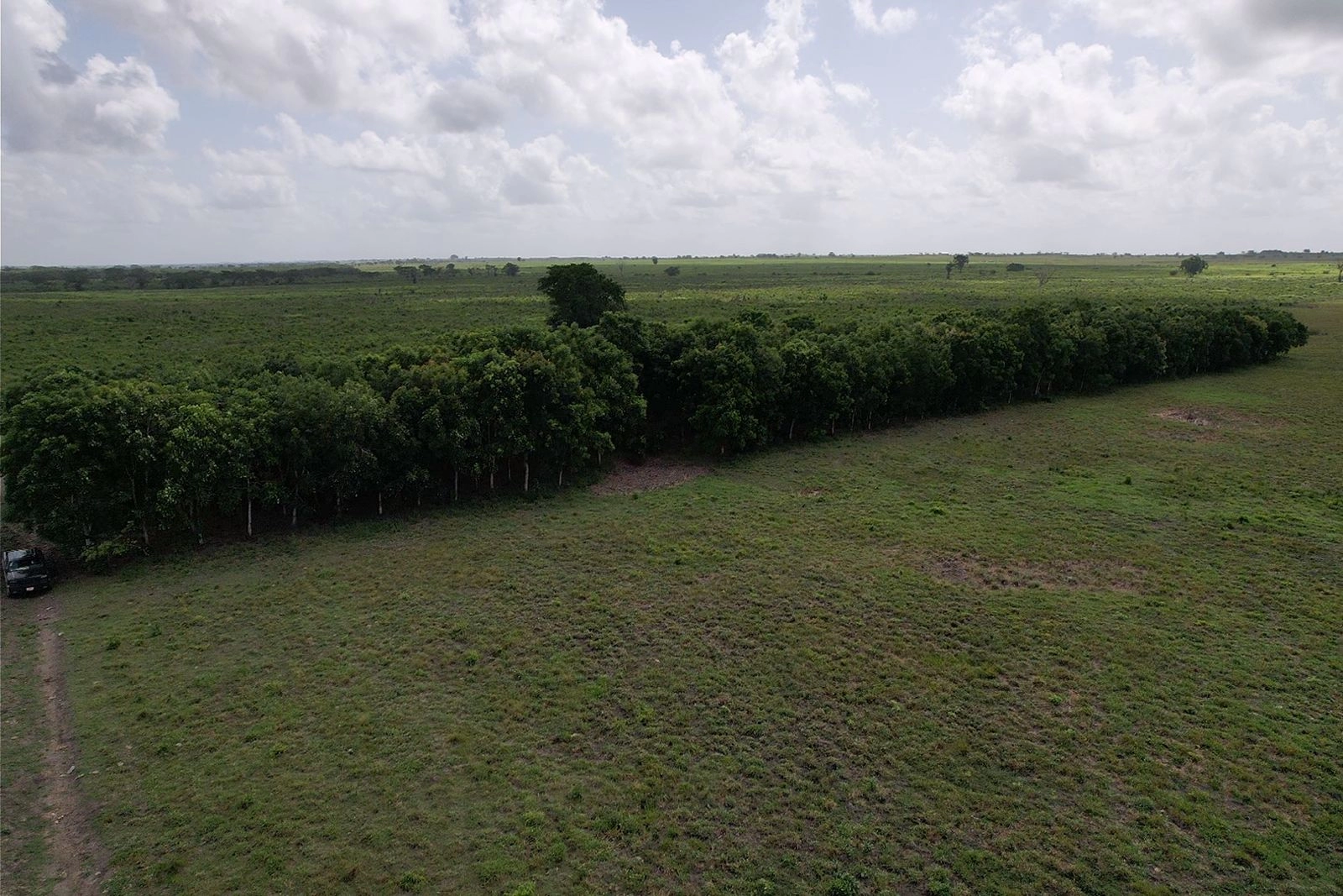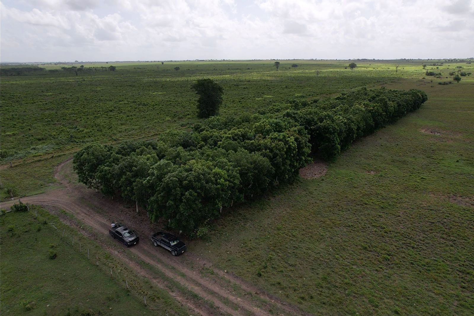 The land includes a well with solar pump and holding tank, making it ready for cattle operations. While there are no buildings or corral, the property is fenced all around, with some interior fencing that includes electric wires for managing livestock. In addition, the property features approximately 700 African mahogany trees, planted about 12 years ago, offering future timber value alongside farming potential.