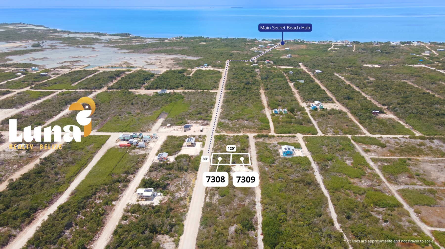 These two adjacent lots in Grand Belizean Estates, Secret Beach, offer a fantastic opportunity to live and work in one of Belize’s most desirable areas. Each lot measures 80’ x 60’, slightly larger than the typical lots in the development. The front, road-side lot is ideal for a small business, boutique rental, or café, while the back lot provides a private space for a home.